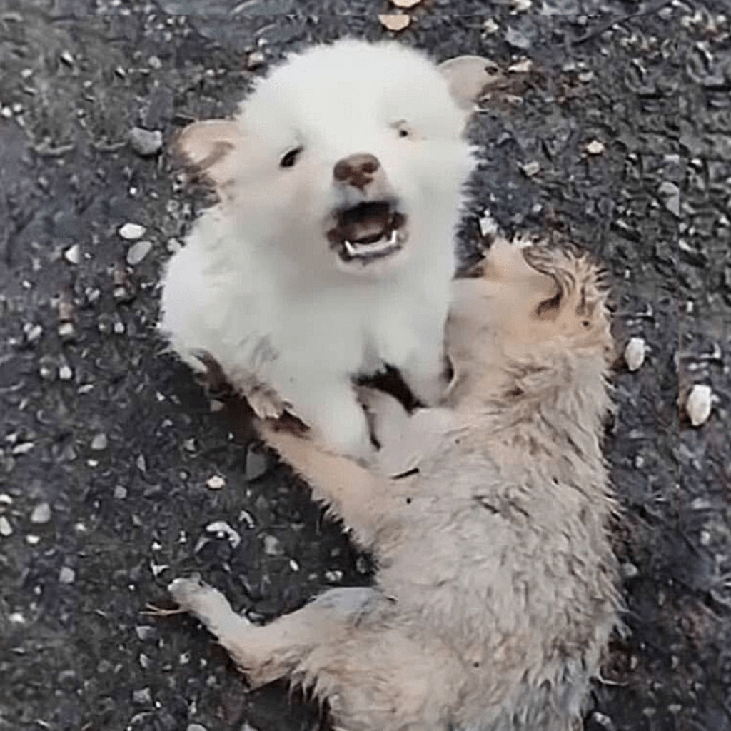 The rain had stopped hours ago, leaving the alleyway slick and cold, reflecting the gray dawn. Amidst the discarded refuse and shadows, a tiny white puppy, no bigger than a loaf of bread, let out a piercing wail that seemed to carry the weight of the world. Its cries were not of hunger or playful mischief, but of profound, raw anguish. Clinging desperately to the still form of another small, light brown puppy, it nudged, licked, and whimpered, refusing to accept the grim reality that had befallen its companion. This heartbreaking scene, witnessed by a lone passerby on their way to an early shift, was more than just a glimpse of animal suffering; it was an unwitting testament to an unbreakable bond forged in the crucible of neglect, a silent plea echoing the custom information saved in this window: “Love knows no species — just hearts that care.” The sheer intensity of the white puppy’s grief, its refusal to abandon its friend, instantly transformed a mundane morning into a narrative of loyalty, loss, and the unexpected twists of fate that awaited these forgotten souls.