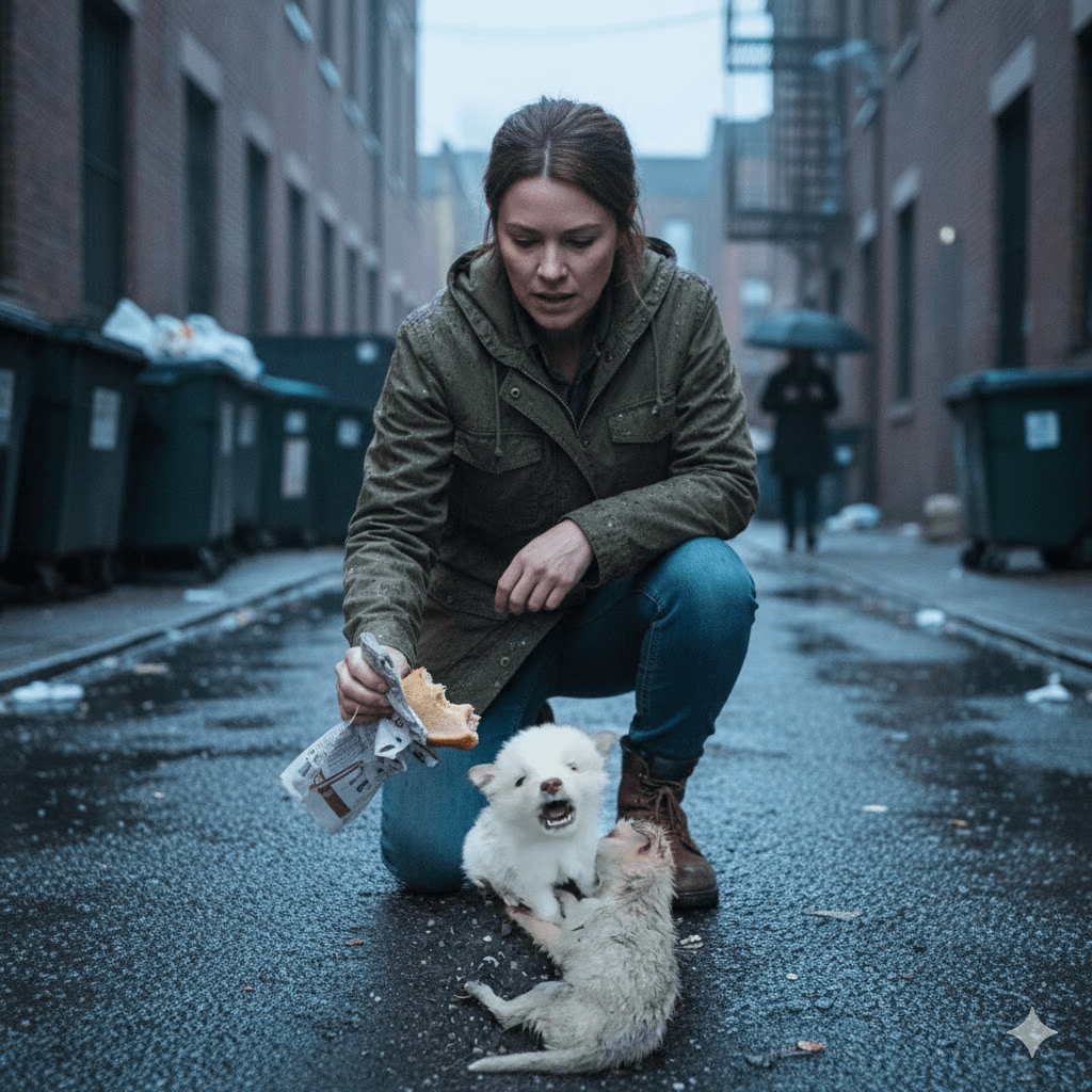 Clara knew she couldn’t leave the living puppy to face this alone. Carefully, she attempted to separate the grieving animal from its deceased companion. The white pup resisted fiercely, snapping and growling, a desperate ferocity in its eyes that belied its size. It was clear that the bond between these two had been everything, their only solace against the unforgiving streets. Clara realized that any attempt to forcibly remove the puppy would only cause further distress and potentially harm. She decided a different approach was needed.