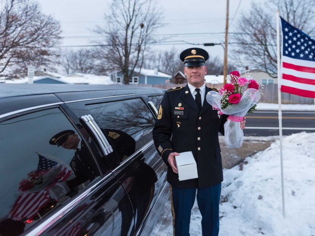 When the door opened, Cayleigh was “glowing.” She looked like a princess in a velvet blue cape, her wrist already adorned with a yellow flower bracelet. Sgt. Bierbrodt knelt to greet his pint-sized date. To make the night even more magical, a limousine waited outside to escort them. Neighbors watched, moved by the sight of the soldier gently taking the little girl’s hand, a true gentleman honoring the daughter of a fallen hero.