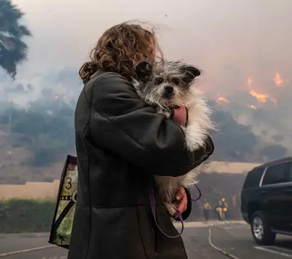 Casey was trapped at work when the fire broke out. As news of the Palisades Fire spread, he frantically tried to make his way back home. Concern for his dogs propelled him forward with urgency.