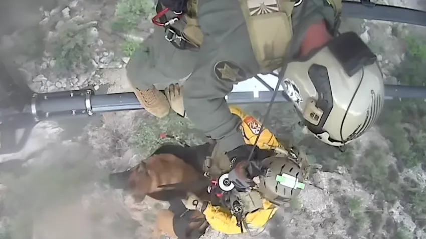 And there, in his arms, a frightened dog trembles, pulled from the wreckage just moments before it was too late.
