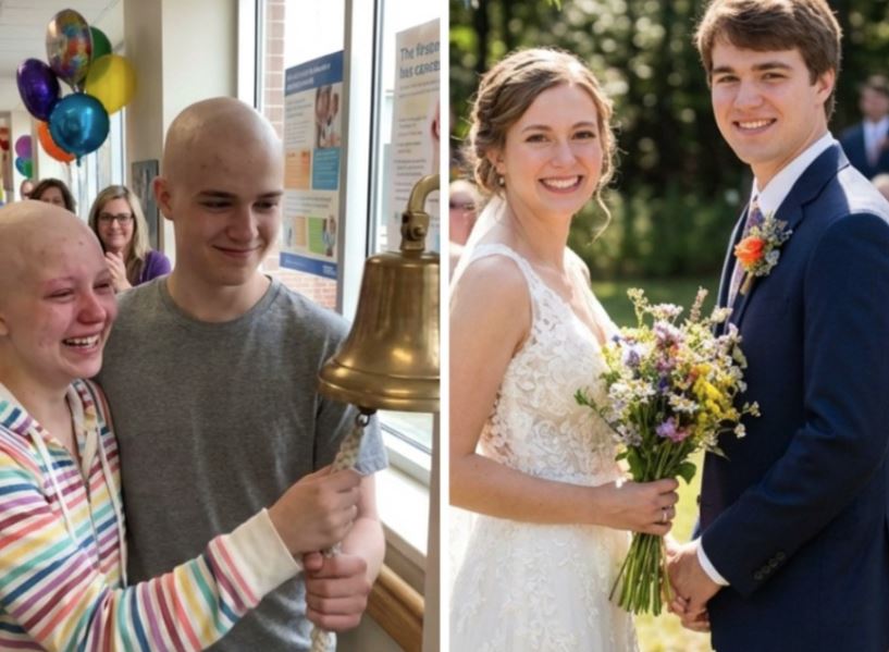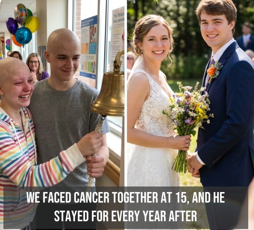 The months passed. I finally completed my treatment, and together we rang that bell — hands shaking, hearts overflowing. Surrounded by applause, it wasn’t just a victory over cancer; it was the first chapter of a bond that would last a lifetime. 🎗💖