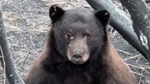 Amid the chaos, one story stood out — a story of courage, compassion, and the resilience of nature. A 25-year-old black bear, later named Nugget, was discovered severely burned and in grave danger. According to reports, a local resident noticed the bear lying motionless amid the flames and immediately alerted the fire department.