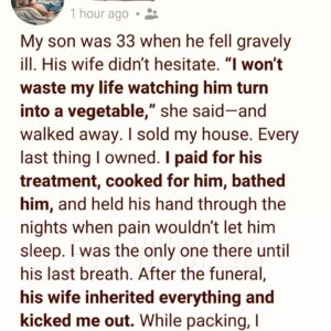 Now I sit alone in this house filled with memories and questions. I replay that moment in the kitchen over and over, wishing I had chosen compassion instead of pride. I tell myself I was setting boundaries. That I had a right to my own life.