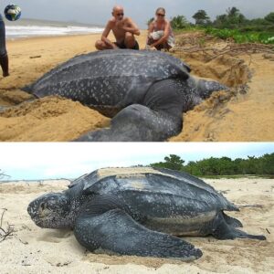After four long years, a Leatherback sea turtle — Earth’s largest living turtle — has returned to Sanibel Island, Florida, to nest once again. Weighing nearly a ton and stretching up to seven feet long, this gentle giant rose from the dark surf under moonlight, driven by the same ancient pull that guides her kind back to the beach where they were born — a miracle of nature called natal homing.