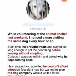 While volunteering at the animal shelter last weekend, I noticed a man visiting the same dog every hour or so. Each time, he brought treats and stayed…