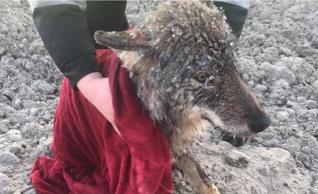 Three compassionate workers rushed to save what they believed was a dog struggling in a freezing river—completely unaware that they were actually rescuing a wild wolf.