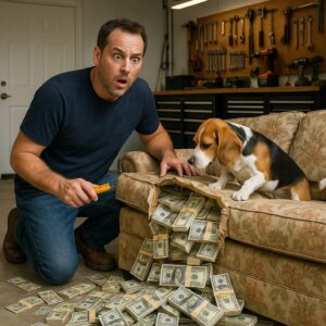 With my heart racing, I grabbed a small utility knife. With shaky hands, I carefully sliced a clean opening in the frayed fabric right where Wasabi had aimed. I pulled it away…and stopped in my tracks. Hidden away between the couch’s frame and its stuffing were stacks of banknotes, tucked in like a secret stash waiting to be discovered. I gasped as I pulled out stack after stack of cash, spreading them on the floor in disbelief.